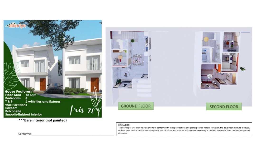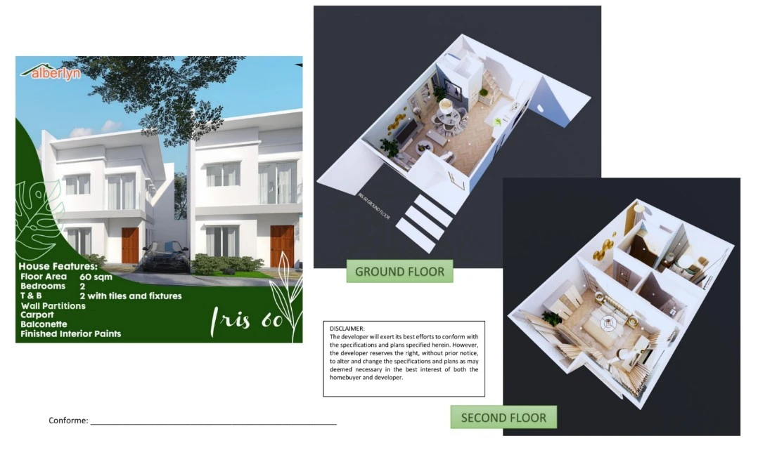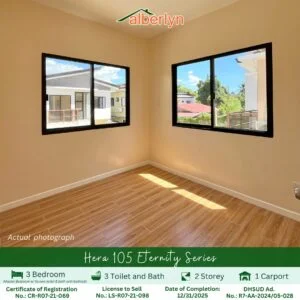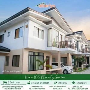 Alberlyn Highlands is a house-and-lot development featuring a variety of well-designed home models ranging from 60 – 105 sqm with lot area from 75 – 150 sqm that cater to growing families. With generous lot cuts, practical layouts, and a serene neighborhood setting, the project aims to provide residents with a balanced lifestyle combining space, convenience, and lasting value.