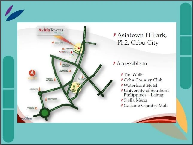Strategically located within Cebu IT Park, Avida Towers Riala puts you just steps away from essential establishments: